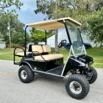 The Club Car DS is a classic golf cart model produced by Club Car from 1980 to 2014. It is known for its durability, ease of maintenance, and affordability, making it a popular choice among golfers. The DS features an aluminum frame for rust resistance. It has a maximum speed of 19 mph and is equipped with basic safety features like rear mechanical brakes. The DS is recognized for its sturdy construction and comfortable seating, making it suitable for both casual and professional use. Despite its age, the DS remains a reliable option for those seeking a budget-friendly golf cart. This unit comes with a radio system.